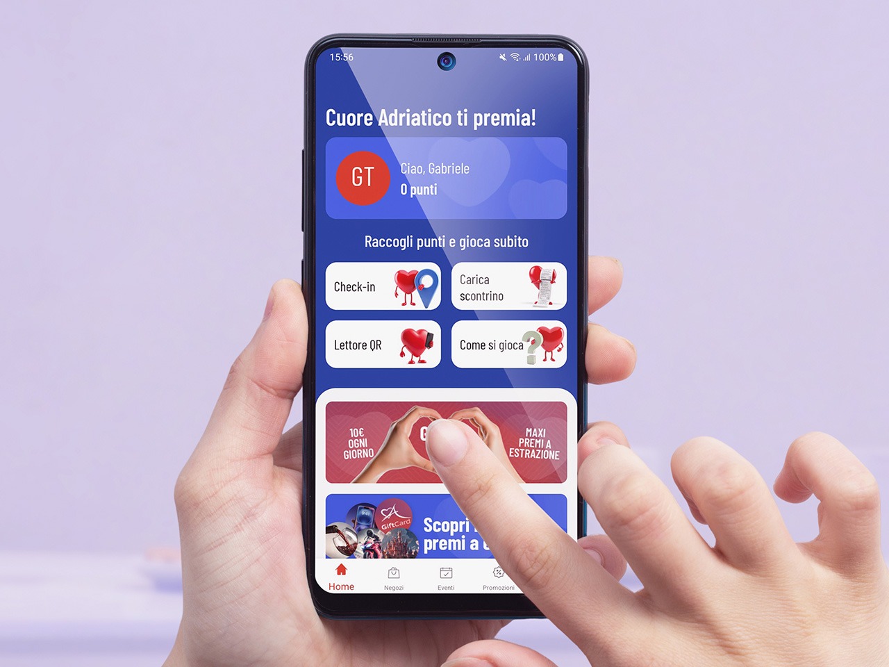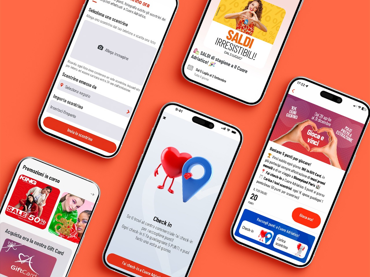 L’app valorizza il rapporto consolidato fra il Centro e le persone che vivono a Civitanova Marche e dintorni. Coinvolgendole sempre più e premiando la loro partecipazione alle attività di Cuore Adriatico.