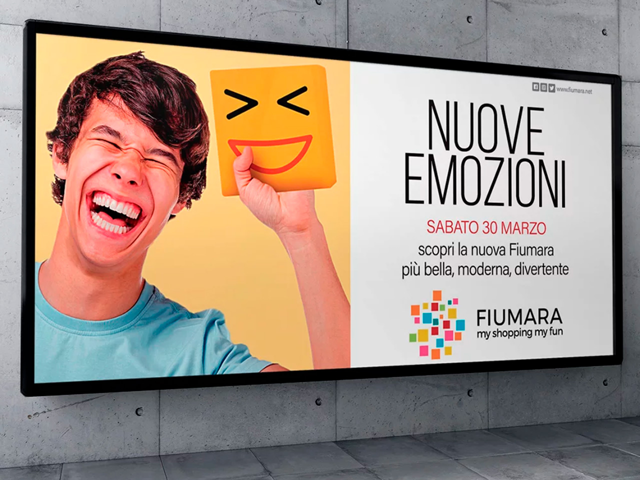 Il nuovo logo esprime un senso di identità tra Fiumara e i suoi visitatori: un brand fatto di persone, di emozioni e passioni. Partendo da questo insight, abbiamo raccontato un Centro che si riconosce nella sua comunità e una comunità che si riconosce nel suo Centro.